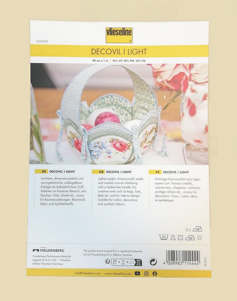 Tessuto termoadesivo, dimensionalmente stabile e resistente, con una consistenza simile alla pelle. Inoltre, è resistente agli strappi, facilmente modellabile, antipiega e fustellabile. I bordi tagliati non sfilano. Ideale per fondi e laterali di borse, zaini, pantofole, cappelli, cinture, bustini e per supporti rigidi ma flessibili.