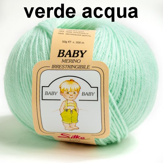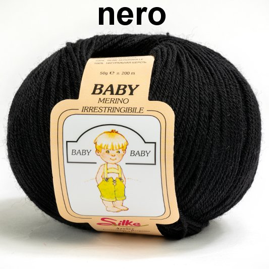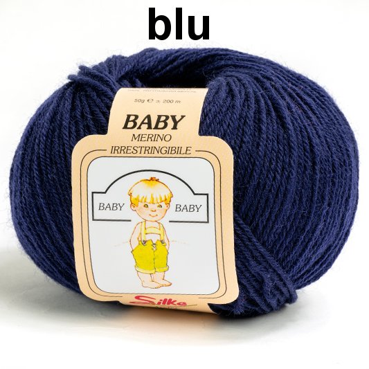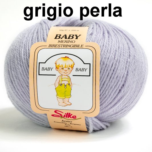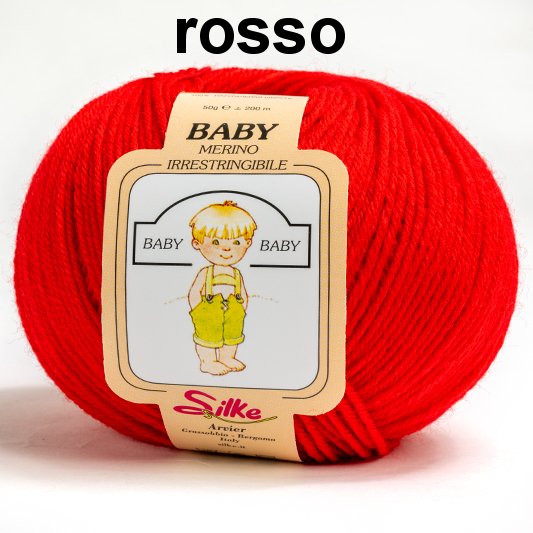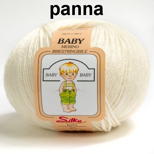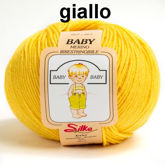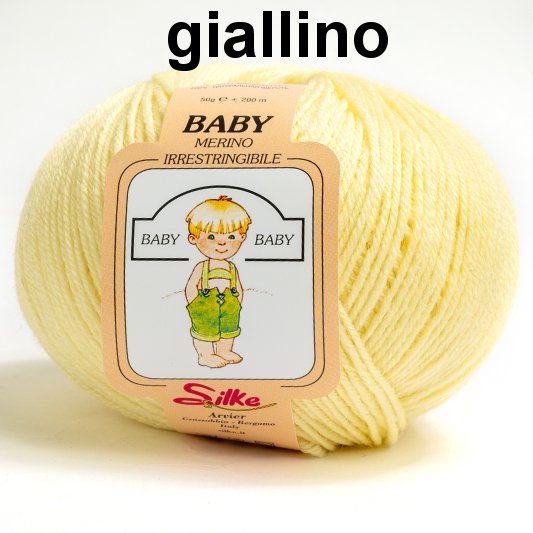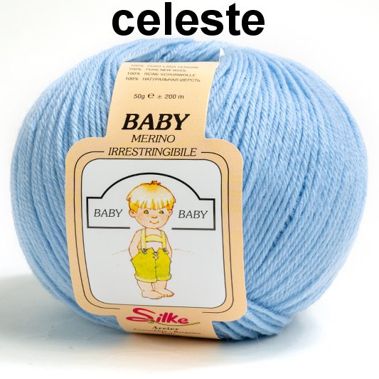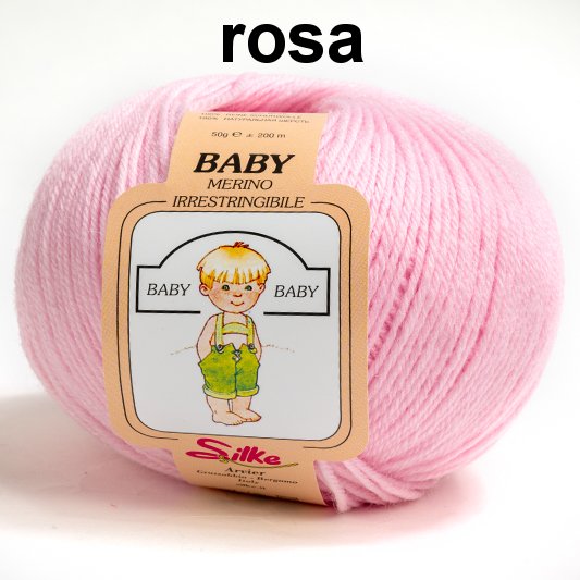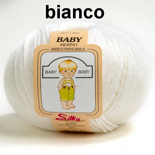 LANA BABY Silke 100% PURA LANA MERINO FINE SUPERWASH in gomitoli da 50 grammi (mt. 200). Si lavora con ferri o uncinetto 2,5/3, la caratteristica della lana merino è la lavabilità e l'irrestringibilità, particolarmente adatta per capi da bambino, ma anche ottima per accessori e maglieria per adulti.