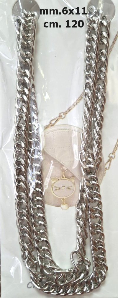 Prezzi IVA inclusa Catena mm. 6x11 lunga cm. 120 colori argento e oro con moschettoni