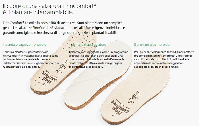 Tutti i modelli FINNCOMFORT sono predisposti per l'inserimento di plantari personalizzati.