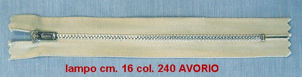 SOLO x ACQUISTO ON LINE SCONTO DEL 50% - Chiusura lampo da guarnizioni per borsette, pochette, gonna e panataloni. Lunghezza disponibili da cm. 16 con catena in alluminio mm.3, per ordinare inserire nel form "NOTE" il colore/misura come descritto nella foto e selezionare la quantità desiderata.