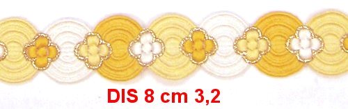 Bordi in macramè con originali combinazioni di fantasie, in questa pagina l'assortimento sulla sfumatura del giallo. Eccellenti bordi decorativi per abbigliamento, cappelli, borse, accessori. La vendita online è in tagli da metri uno o multipli, più tagli saranno inviati interi.