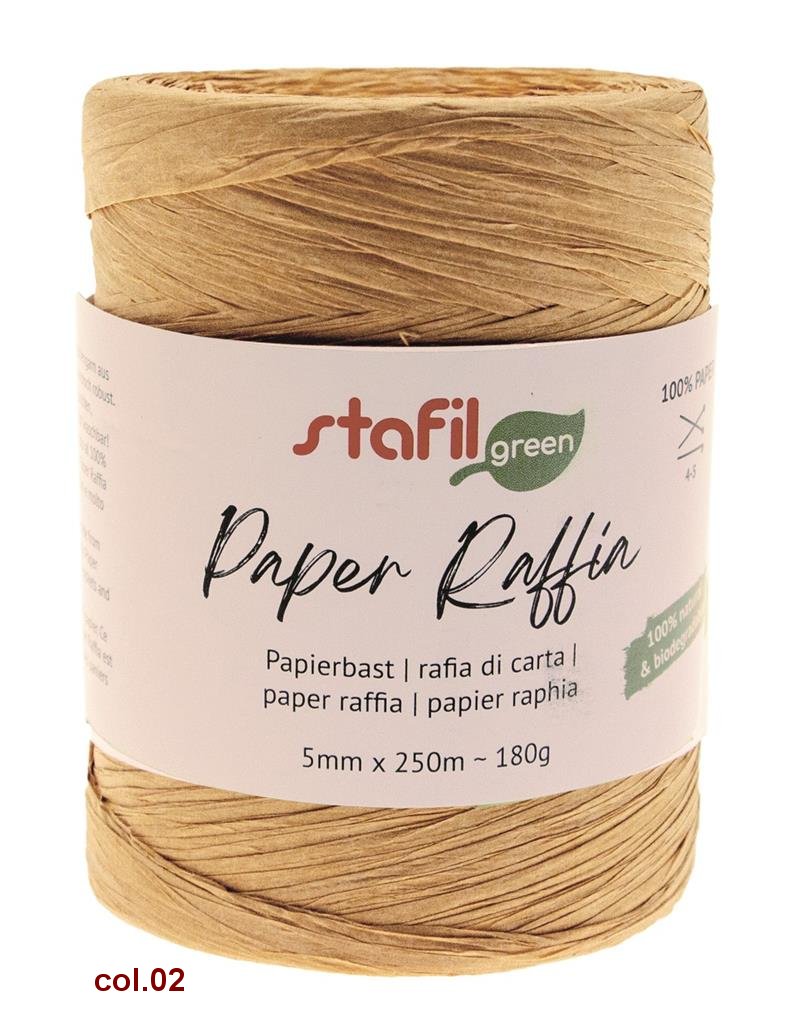 Filato naturale composto al 100% da carta, E' leggerissimo ma resistente, perfetto per la realizzazione di borse, cappelli, cestini e accessori realizzabili a maglia con uncineto e ferri. Non lavabile. Lavorabile con ferri o uncinetti mm.4-5