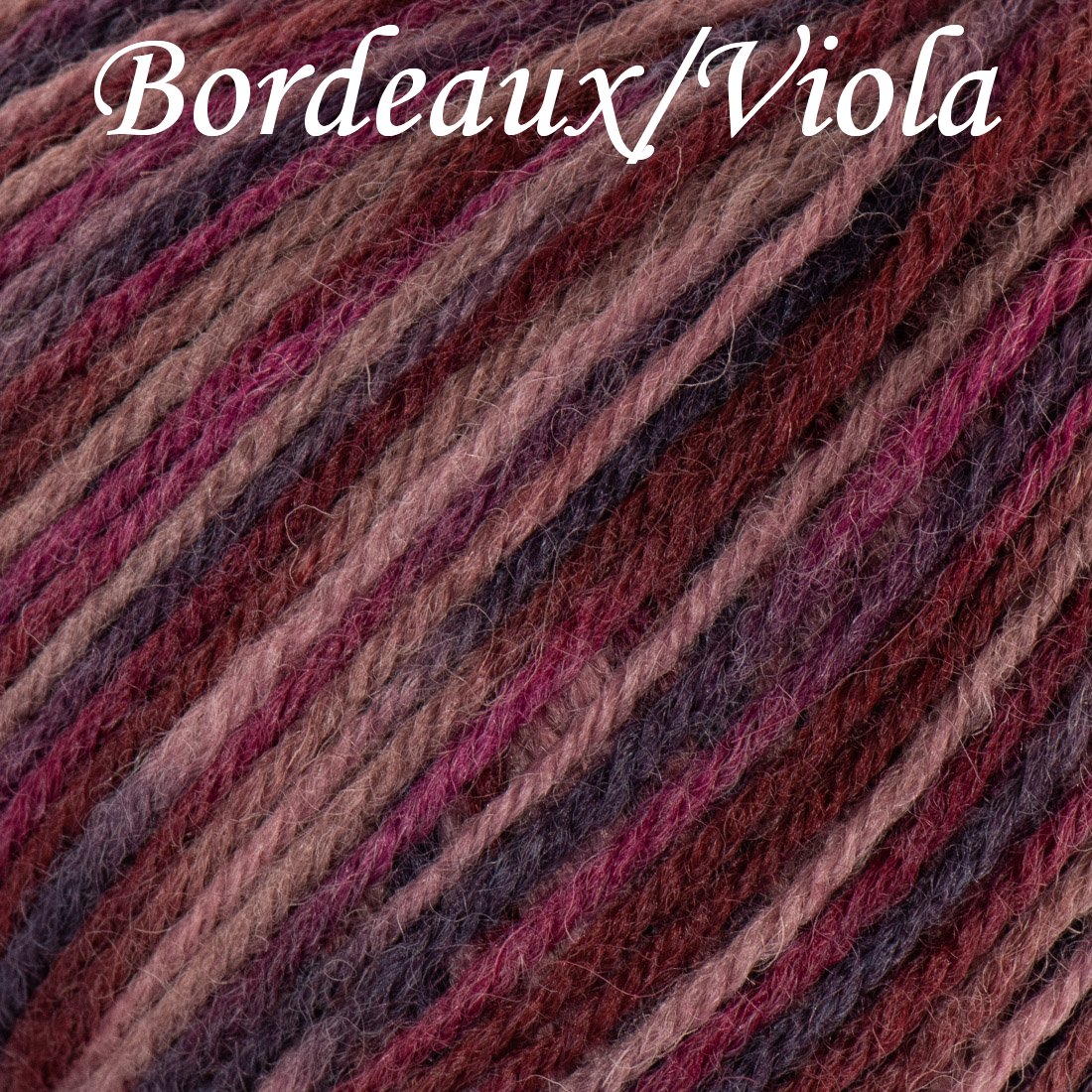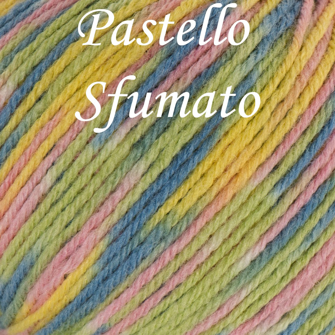 Filato sfumato, stampato, confezionato in gomitoli da 50 grammi (mt 150) - 50% PURA LANA VERGINE – 50% ACRILICO. Lavorabile con ferri 3 - 3,5.