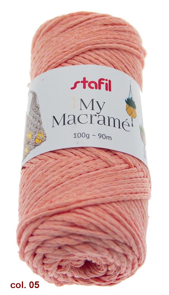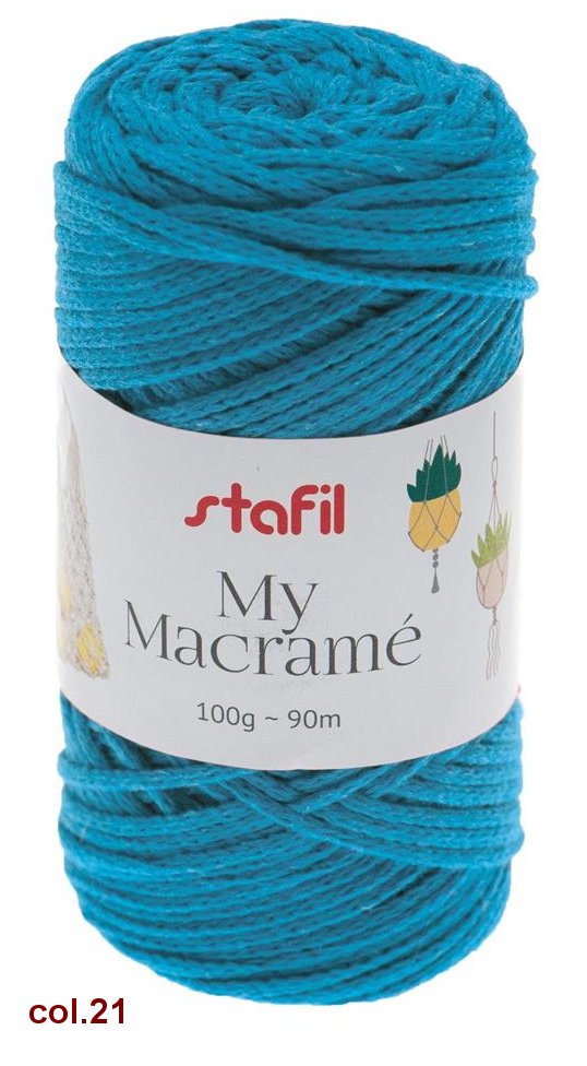 Il macramé è una tecnica di annodatura originaria dall’Oriente che sta diventando sempre più popolare anche da noi, lavorabile anche con ferri e uncinetto. In un batter d’occhio, si possono creare opere d’arte tessute come decorazioni murali, gioielli o altri oggetti. Trattandosi di materiale in gran parte riciclato è possibile riscontrare una leggera variazione di tonalità del colore da una fornitura all’altra.