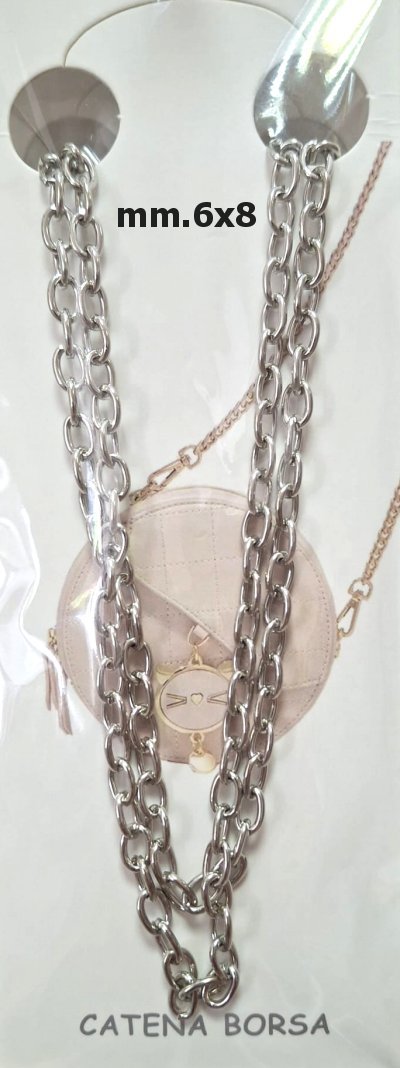 Prezzi IVA inclusa Catena mm. 6x8 lunga cm. 120 colori argento e oro con moschettoni