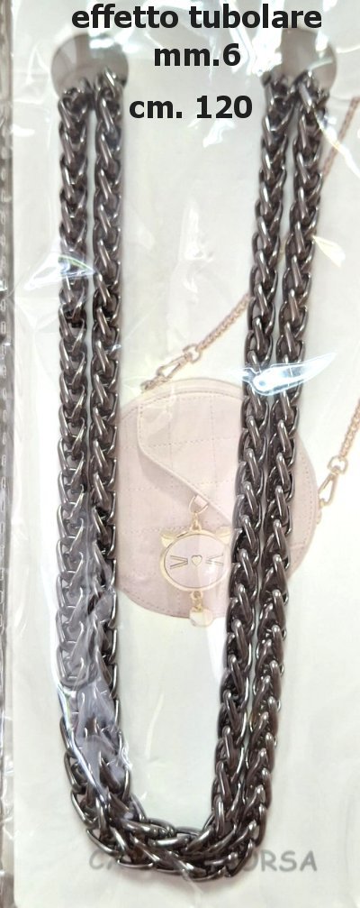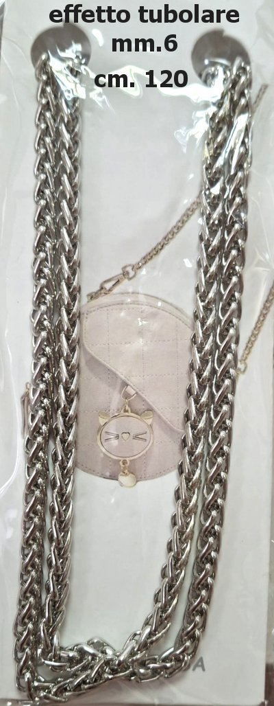 Catena mm6 effetto tubolare lunga cm. 120 colori argento, oro, canna di fucile con moschettoni